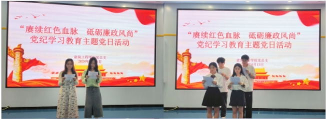 13日,建筑工程学院组织师生党员开展“赓续红色血脉砥砺廉政风尚”党纪学习教育主题党日活动,观看专题片《正风反腐就在身边》第四集,师生共同朗诵诗词《廉洁之风吹入我心》《廉政与权力》《廉洁颂》及《爱廉说》等,进一步强调了廉洁自律的重要性,做到心中有法、言行有矩。