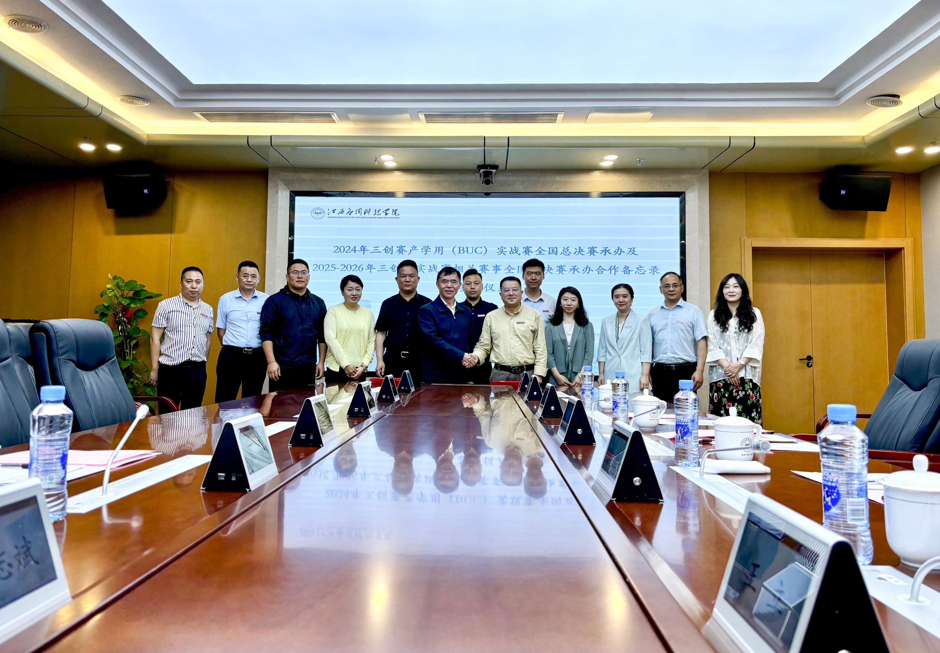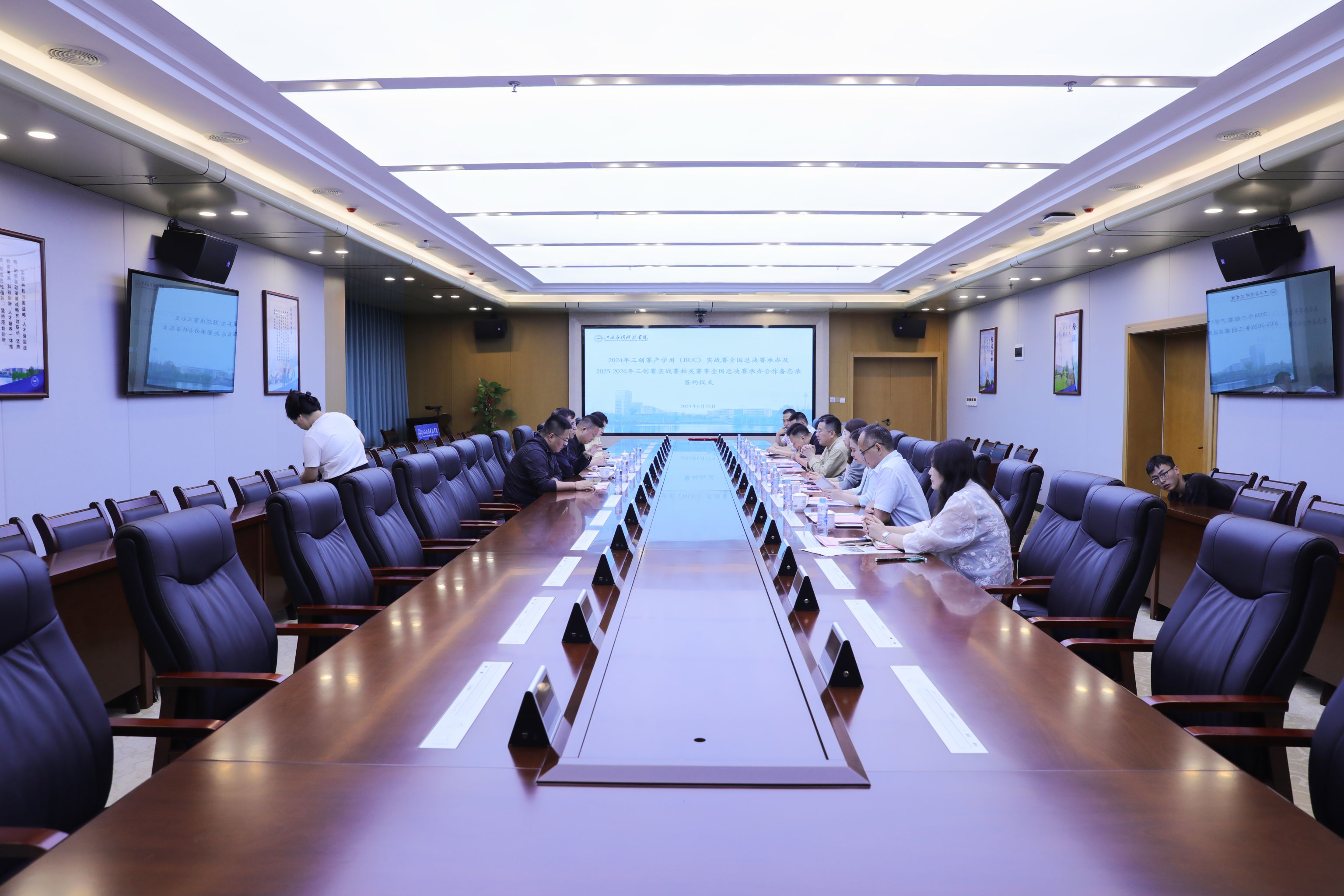 6月25日,2024 年三创赛产学用(BUC)实战赛全国总决赛承办及 2025-2026 年三创赛实战赛相关赛事全国总决赛承办合作备忘录签约仪式在best365官方网站登录入口举行。三创赛组委会主席、教育部高等学校电子商务类专业教指委副主任委员、西安交通大学李琪教授,辰林教育集团董事局主席、best365官方网站登录入口董事长黄玉林,辰林教育集团财务总监折慧,best365官方网站登录入口执行董事长王立,best365官方网站登录入口党委副书记江星,三创赛组委会副秘书长、湖北省电子商务学会副会长、湖北经济学院创新创业学院执行院长、教授毛志斌,best365官方网站登录入口副校长谢远健出席签约仪式。签约仪式由学校常务副校长干甜主持。