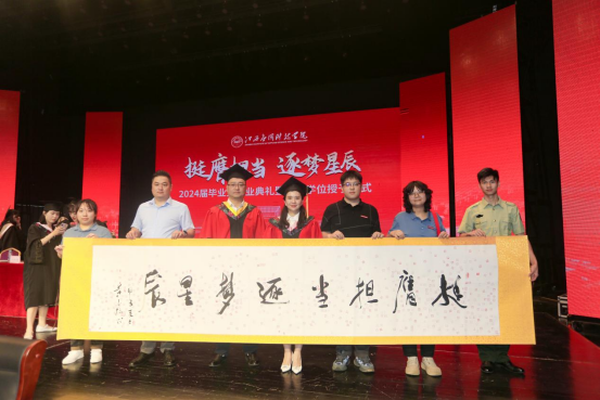江星宣读了《关于准予2024届学生毕业的决定》《关于2024届本科毕业生学士学位授予决定》《关于表彰2024届优秀毕业生的决定》。随后,校领导为2024届毕业生代表颁发毕业证书;为2024届优秀毕业生代表颁发证书;为本科毕业生拨流苏、颁发学位证书。