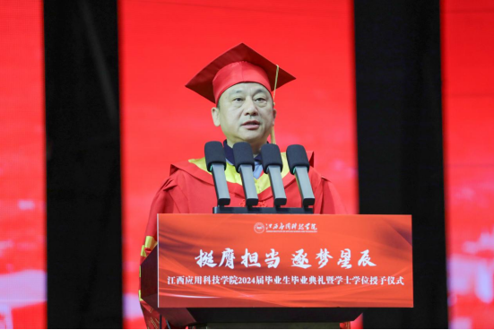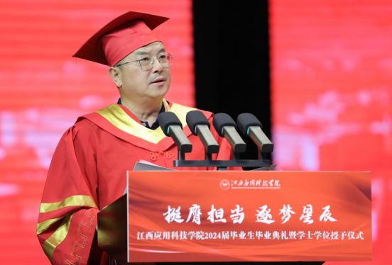 彭迪云在毕业典礼上发表题为“奋楫启航 逐梦笃行”的讲话。他表示,2024届毕业生颇为特殊。今年恰逢应科院建校40周年,四十载风雨兼程,桃李芬芳,正是因为有了你们一届届应科学子接续奋斗,才成就了今天的美丽应科,铸就了应科的光辉品格。在我眼里,成长中的你们,才是应科最富有诗意的一道亮丽风景线。