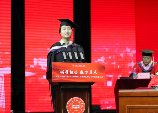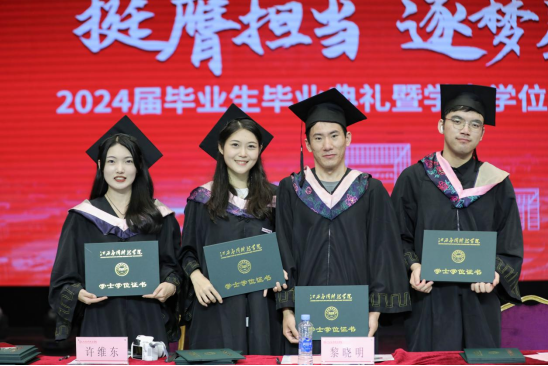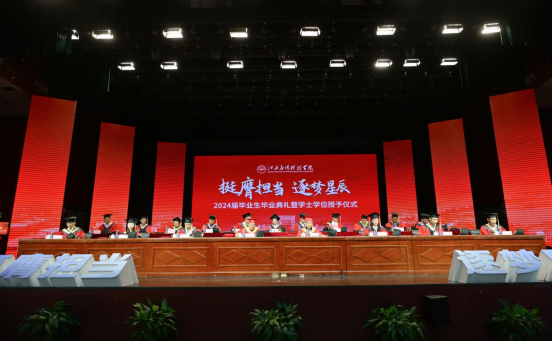 江星宣读了《关于准予2024届学生毕业的决定》《关于2024届本科毕业生学士学位授予决定》《关于表彰2024届优秀毕业生的决定》。随后,校领导为2024届毕业生代表颁发毕业证书;为2024届优秀毕业生代表颁发证书;为本科毕业生拨流苏、颁发学位证书。