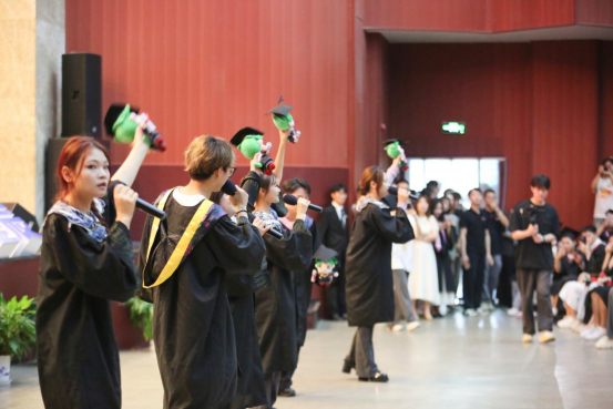 典礼开始前,来自艺术团、民乐团的老师同学们献上精彩的暖场演出。毕业短片、师生民乐合奏《通天大道宽又阔》、AI创意秀《少年》……一首首熟悉的祝福歌曲温馨感人,带领同学们重拾美好校园时光。