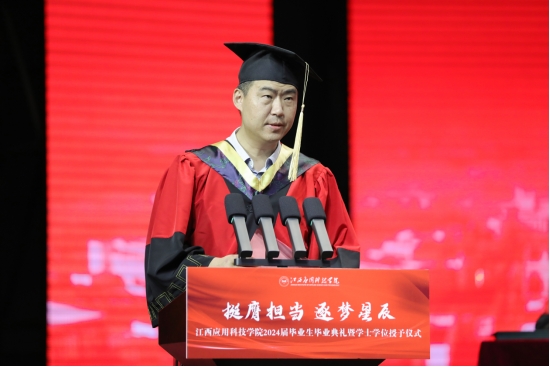 黄玉林在毕业典礼上发表主题为“追求卓越 行知愈强”的讲话。他首先代表学校向顺利完成学业的同学们及其亲友表示热烈祝贺,向悉心培养同学们的老师致以衷心的感谢。黄玉林指出,全体应科人以昂扬的精神风貌和顽强斗志,通过教育部本科教学合格评估,为学校下一步高质量发展开新局;确定了AI时代本科高校应用型人才培养发展目标为学校实施数字化教育发展抢新机;与国内头部企业共建六大产业学院以“八共”办学特色为best365官网产教融合闯新路;在国内外各大比赛上屡创佳绩为学校教学内涵建设和文化铸校添新彩;智能化生态校园和刘光华自然遗产博物馆的建设初具规模展新风貌。“五新”的应科以她丰厚的文化底蕴、鲜明的办学特色、优良的生态环境、在迎接建校四十周年的光辉时刻,在数字化时代追求卓越,众志成城,舞出精彩,干出奇迹。