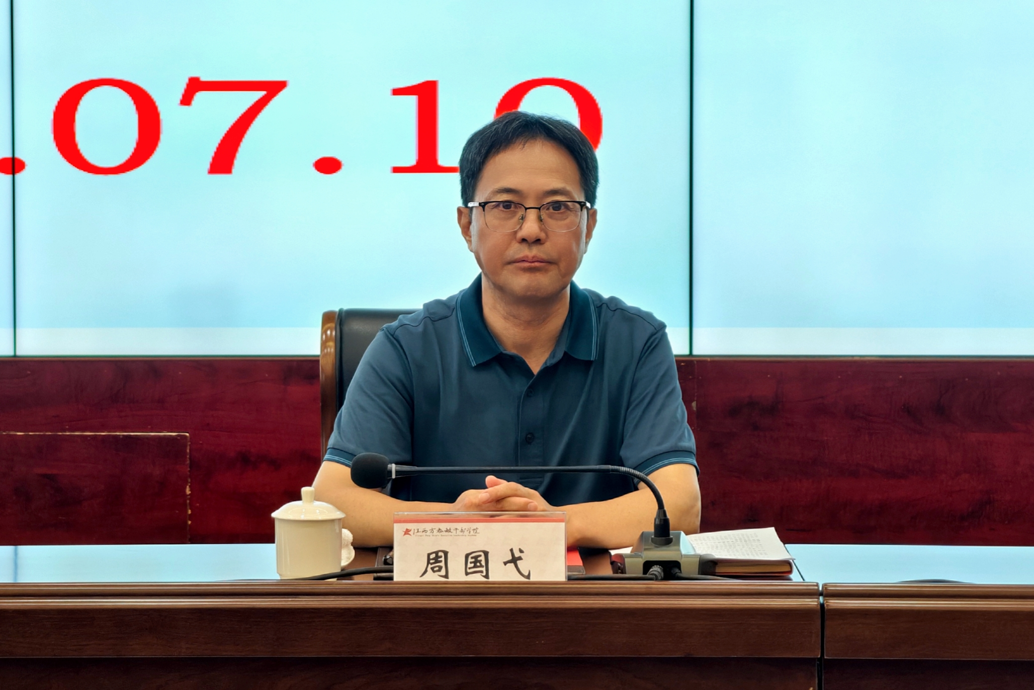 周国弋在致辞时预祝学员们能够在紧张而又充实的培训中,做到学有所得、学有所思、学有所行,并向学员们推介了新时代的上饶。他指出,上饶旅游资源丰富,地理位置优越,交通资源便利,发展潜力巨大。今日之上饶,正如方志敏烈士当年笔下所愿,“到处都是活跃跃的创造,到处都是日新月异的进步”。他还向学员们介绍了江西方志敏干部学院的发展情况,列举了学院自办学以来取得的一系列成绩,指出学院目前已被列入中组部备案的党性教育干部学院、江西省重点支持建设的干部学院、上饶市干部党性教育基地等。