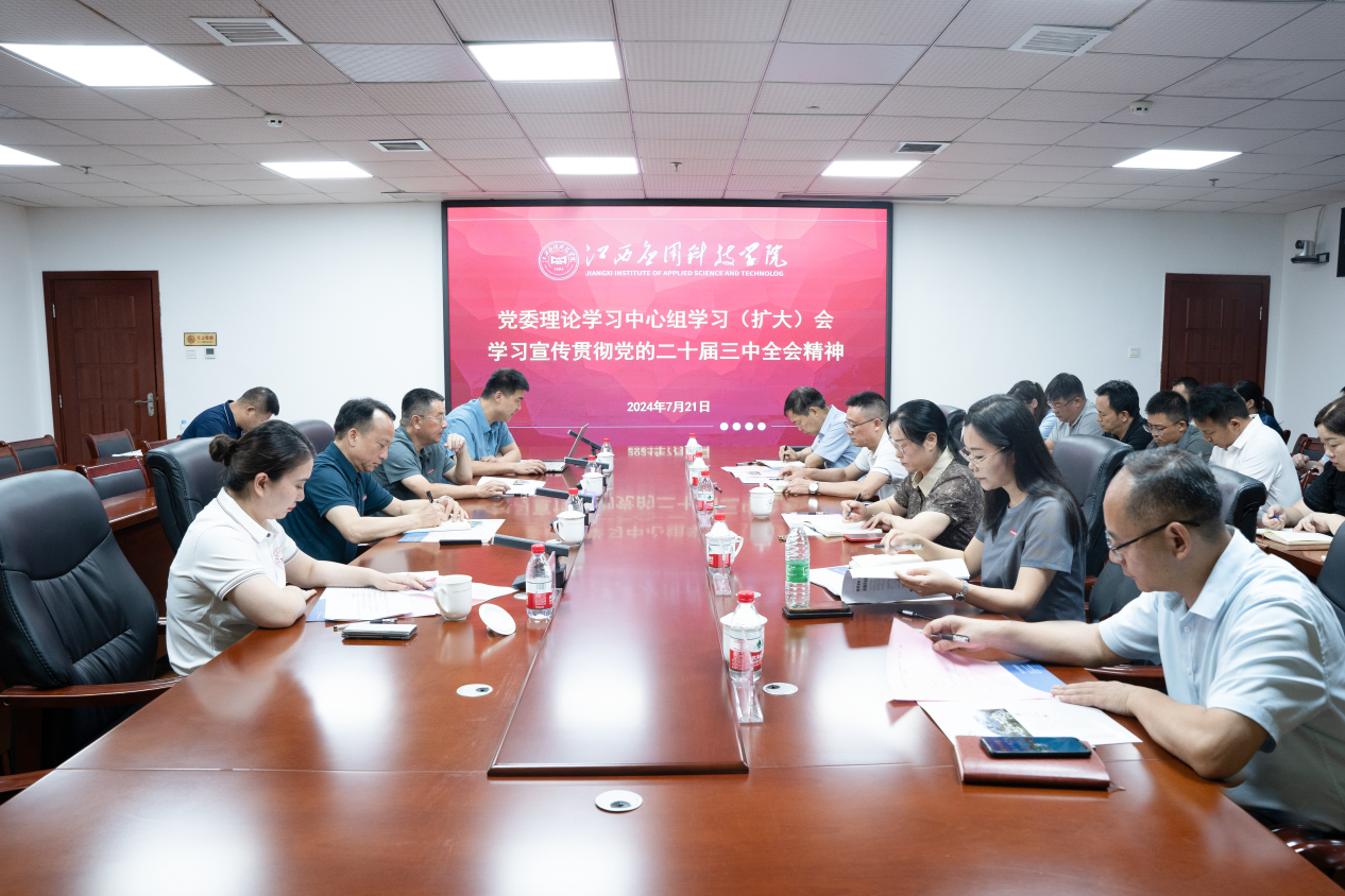 2024年7月21日下午,best365官方网站登录入口党委理论学习中心组召开2024年第七次学习(扩大)会,学习宣传贯彻党的二十届三中全会精神。党委书记彭迪云领学,党委副书记、董事长黄玉林出席会议并总结讲话,党委领导班子成员及其他校领导、党群职能部门负责人、各基层党总支(直属党支部)书记参会,党委副书记、纪委书记江星主持会议。