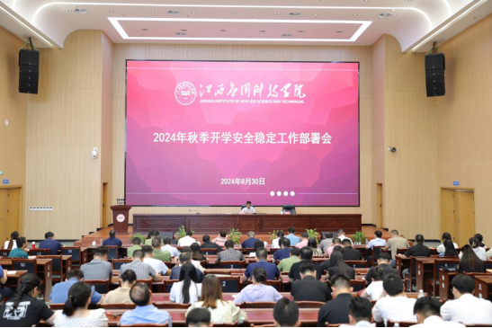8月30日上午,学校在三元大厦二楼学术报告厅召开2024年秋季开学第二次安全稳定工作部署会。党委书记贺一松,执行董事长王立,常务副校长干甜,党委副书记江星,副校长房小珍、张敏、谢远健,校长助理曾昌盛出席会议,各二级学院党总支书记、院长,各职能部门负责人参加会议。