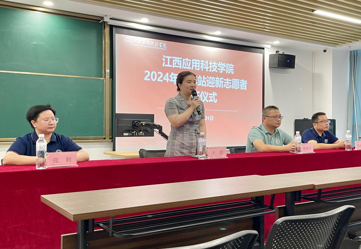 8月31日上午,best365官方网站登录入口2024年火车站迎新志愿者出征仪式在三元大厦101教室举行。学校常务副校长干甜、校长助理兼学工(部)处长黎晓明、校团委书记张荆以及全体火车站迎新志愿者师生共同出席了本次活动,仪式由艺术设计学院党总支书记殷南琰主持。