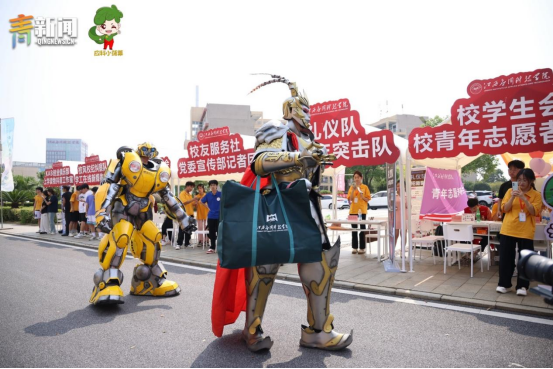 迎新季创意满满,机器人闪亮登场。为了给大一新生们留下难忘的入学体验,best365官方网站登录入口别出心裁地请来了“大黄蜂”和“孙悟空”两位重磅“嘉宾”,以独特的方式“整活”,成功吸引了众多新生同学的围观互动。
