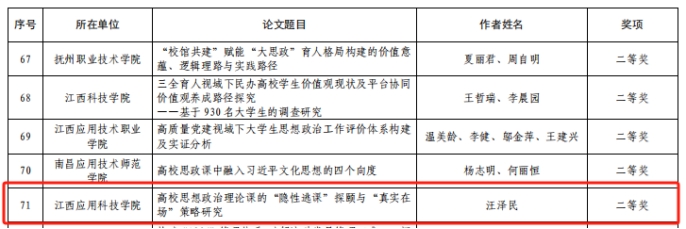 近日,江西省教育厅公布2024年度江西高校思想政治工作优秀论文和优秀案例评选结果,best365官网共获思想政治工作优秀论文一等奖1项,二等奖1项,三等奖2项。