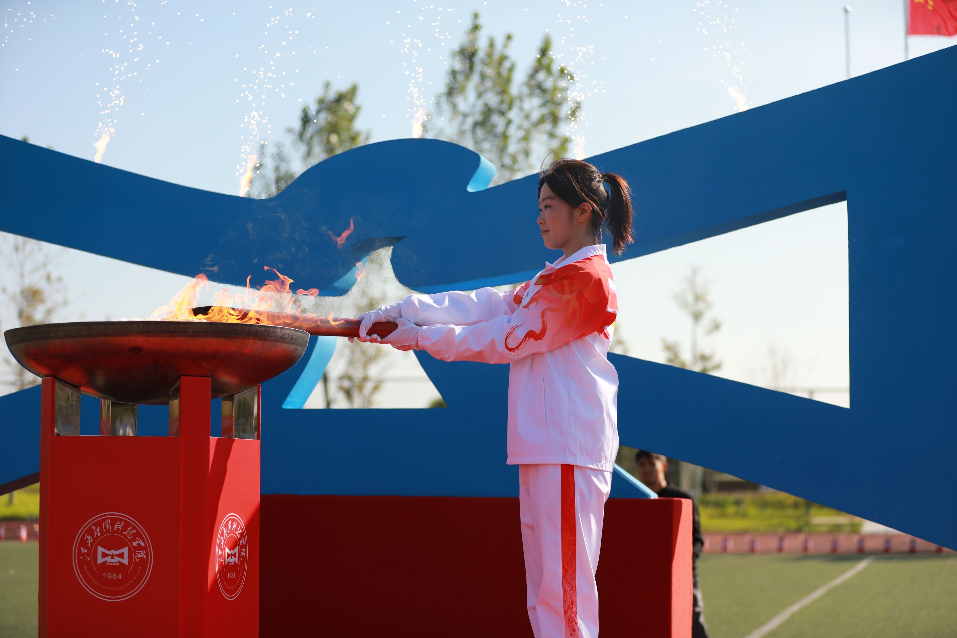 聚力青春,薪火相传。裁判员代表宣誓结束后,本届校运动火炬传递接力开始。刹那间,整个运动场人声鼎沸,欢呼声此起彼伏。火炬由校领导、优秀青年教师代表、优秀学生代表沿着跑道依次传递。
