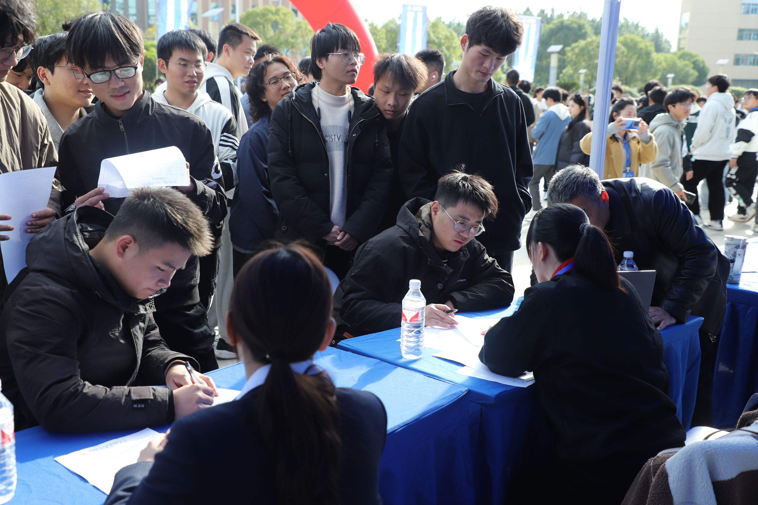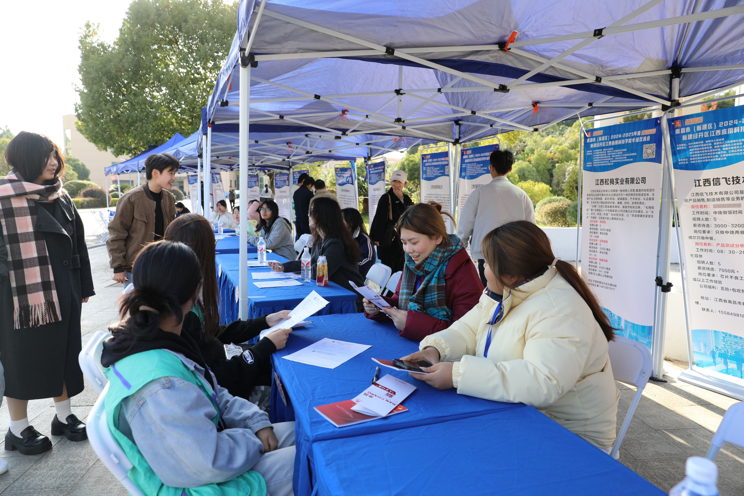 11月26日,由中共南昌市委、南昌市人民政府主办,best365官方网站登录入口承办的南昌市(新建区)2024—2025年度“百场校招”新建经开区best365官方网站登录入口专场双选会在校图书馆门口举办。江西省新建经济开发区企业发展服务中心主任秦斌到场指导。学校相关职能部门负责人,各二级学院院长、书记、就业专干、辅导员及校招生就业处全体成员现场组织协调。