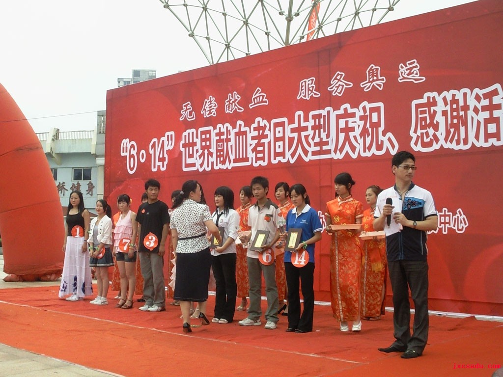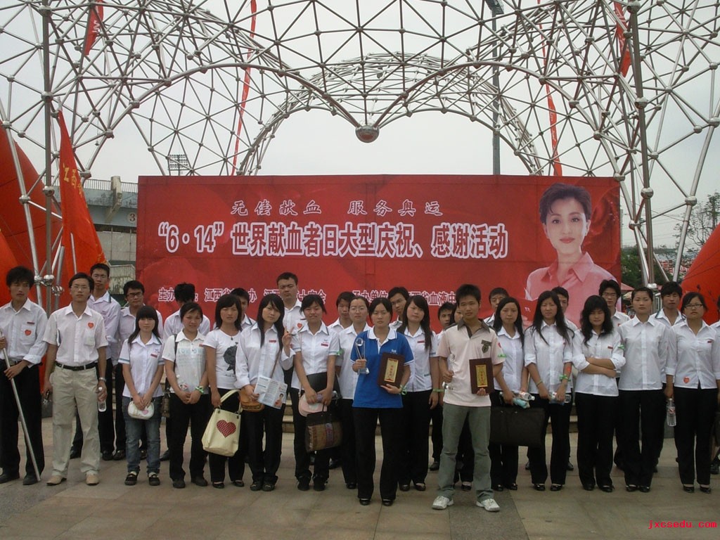 新闻中心记者徐玲报道:随着国民素质的不断提高,“无偿鲜血”也越来越受到世人的关注。6月14日,best365官网青年志愿者协会及学生会代表参加了由江西省献血办、江西省红十字会主办,江西省血液中心承办的“6.14世界献血者日”大型庆祝、感谢活动在八一体育馆门前隆重举行。到场的嘉宾有江西省卫生厅副厅长刘富林,江西省血液中心副主任唐继红等以及江西师范大学、南昌航空大学、江西财经大学等高校代表。