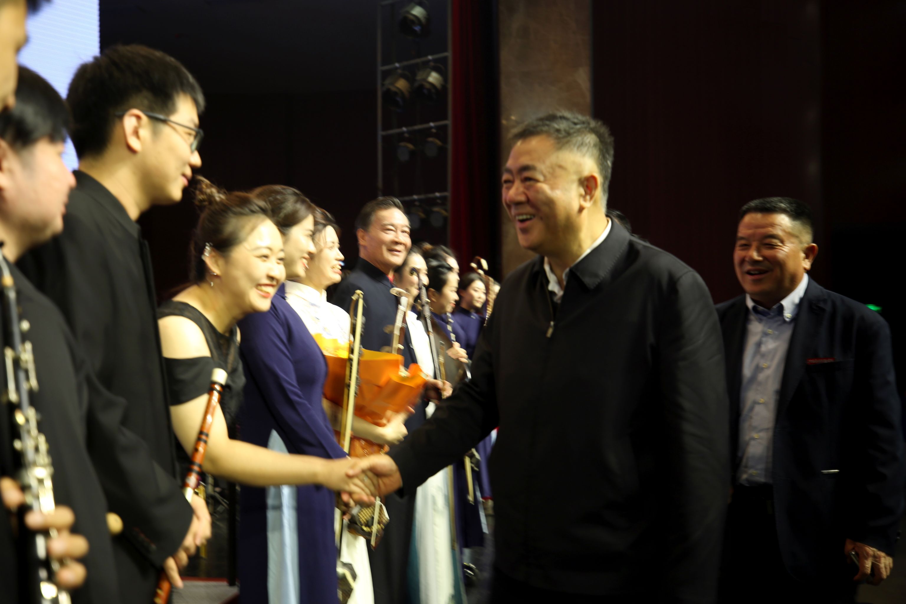 演出结束后,朱虹与演职人员一一握手,热情交流
