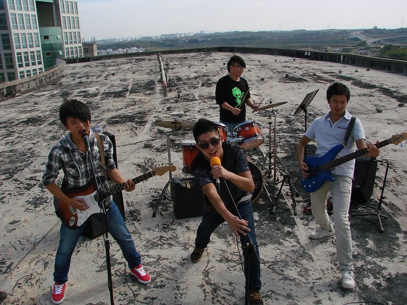 城院新闻网讯 记者卢勇华报道:商业街、操场、足球场甚至是教学楼的屋顶,架起架子鼓,就可以高歌一曲,在摇滚音乐的世界里诉说自己的梦想——这就是晓乐队,欢歌着“毛手毛脚”的音乐却给自己及身边的人带来了实实在在的享受与快乐。