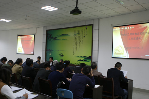 城院新闻网讯 记者卢勇华、通讯员刘宇中报道:10月17日上午,学校党的群众路线教育实践活动工作推进会在活动中心二楼会议室召开。学校教育活动实践领导小组组长、党委书记严平出席会议并讲话,校领导李存益、周运浩出席会议,学校领导小组全体成员及办公室综合组、联络组、宣传组和校内督导组成员参加会议。
