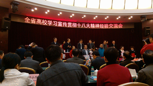 城院新闻网讯 记者陈轩报道:11月26日,省教育工委、省教育厅在南昌大学前湖校区前湖大厦召开全省高校学习宣传贯彻十八大精神经验交流会,全省本科高校及在昌高职高专院校近百名代表参加交流会。