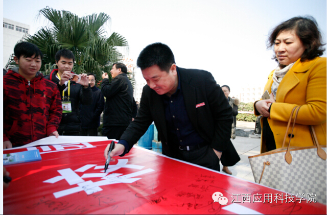 (图为董事长黄玉林教授在条幅上签名)