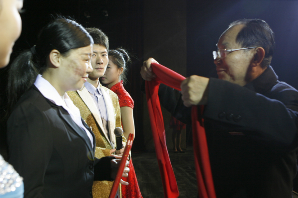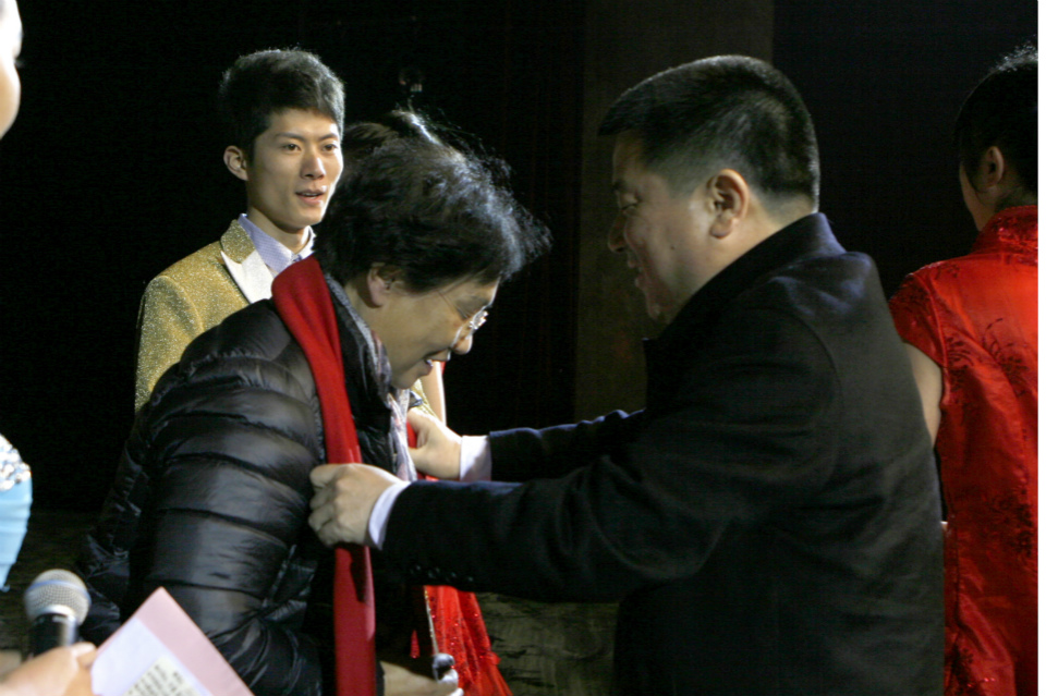 吴朝栋为他颁发了荣誉证书,并合影留念。瞿振东首先感谢了学校对自己的栽培,感谢学校领导与艺术设计学院的领导对自己工作与生活的关照,并表示将更加努力。