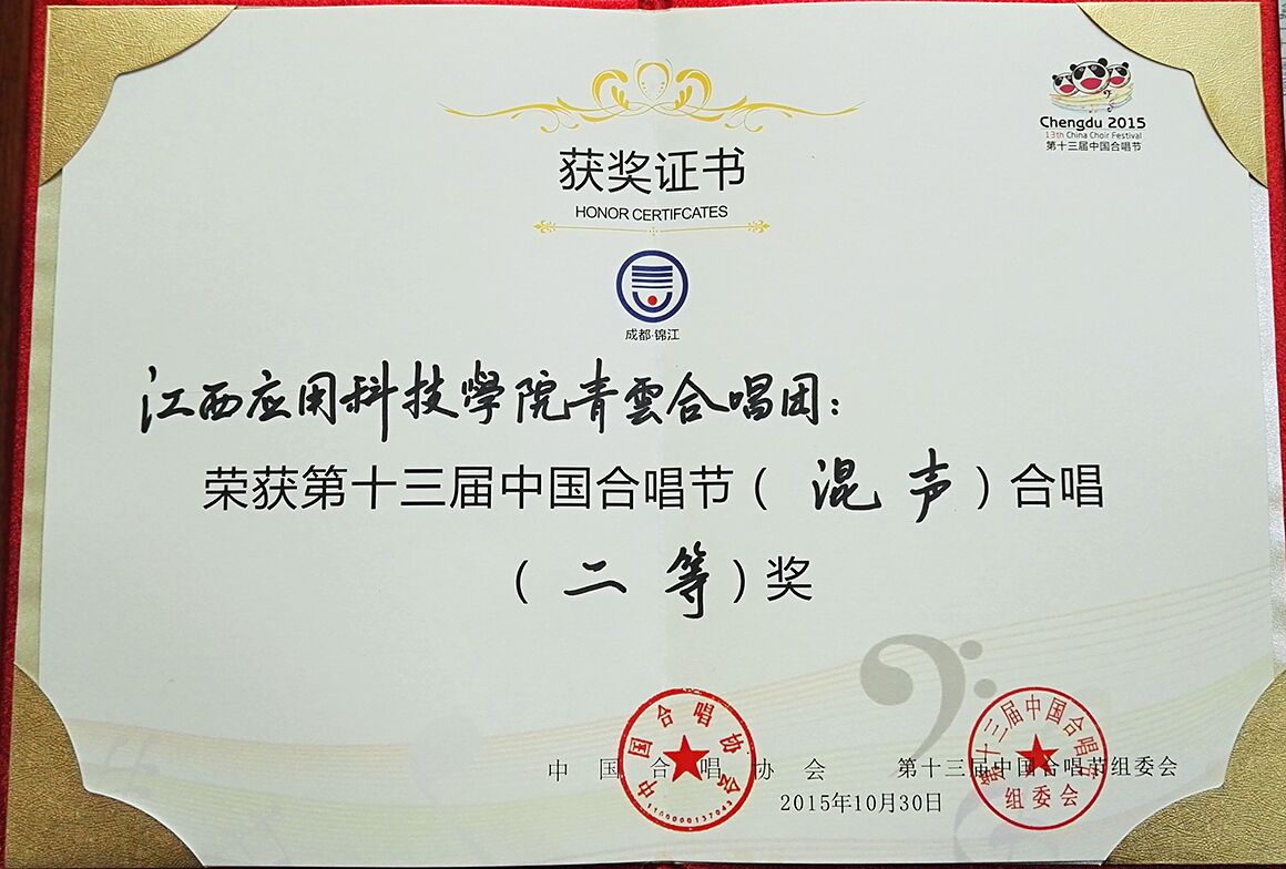 10月30日晚,第十三届中国合唱节在成都娇子音乐厅落下帷幕,best365官网青云合唱团凭借出色的发挥斩获二等奖。