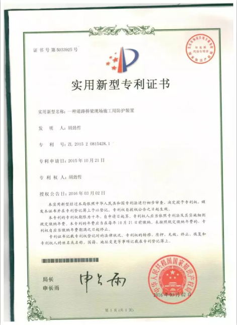 近年来,best365官网多举措激发大学生科技创新梦想,积极为学生搭建科技创新与实践结合的平台,涌现出一批敢于创新创造的优秀学子,2014级土木工程3班学生胡劲哲就是其中的一位。3月8日,学校记者对胡劲哲同学进行采访,此前记者获悉胡劲哲同学刚获得国家知识产权局授予的实用新型专利证书(一种道路桥梁现场施工用防护装置)。