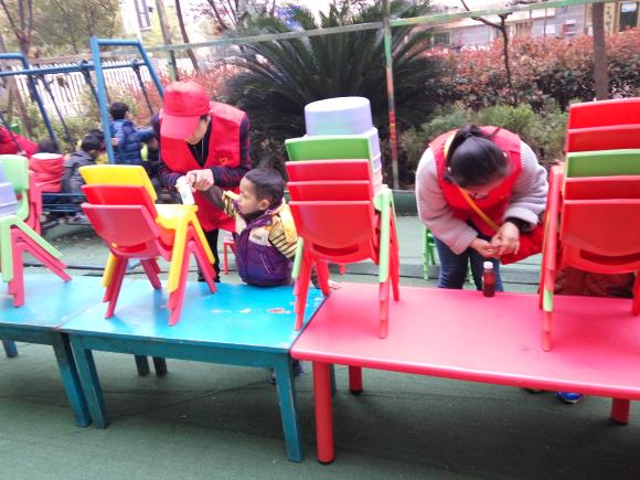 当天中午,best365官网志愿者统一在学校一食堂门口集合,一起前往湾里区儿童康复中心。来到康复中心后,儿童康复中心负责人对best365官网志愿者朋友表示了欢迎,此时正值小朋友们午休。于是,志愿者就趁着小朋友们睡觉的时间,开始准备着康复训练要用到的彩笔、桌椅等工具。