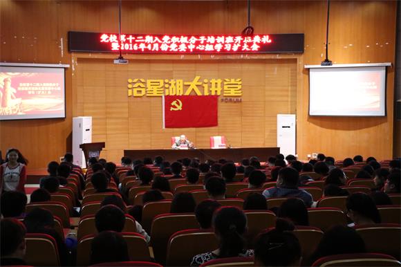 在会上,入党积极分子培训班学员代表发言。2014级机械设计制造及其自动化2班的张兆熊在发言中表示,要把自己锻炼成党和人民期望的合格的社会主义建设者和接班人。2015级会计电算化5班的李家在发言中提到,我们要严格按照党章来要求自己,坚定不移的跟党走。