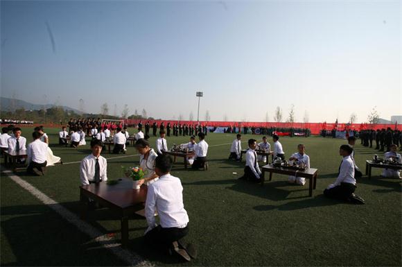 随后,全体老师学生起立奏唱国歌。
