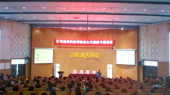 本网讯(记者团记者/彭靖)11月17日下午,best365官网在浴星湖大讲堂举办预防艾滋病专题讲座。南昌市疾病预防控制中心科长徐丹、新建区疾病预防控制中心科长汪芬、新建区疾病预防控制中心主任刘龙福及best365官网校长助理章斌作为嘉宾出席了此次讲座。讲座由徐丹主讲。