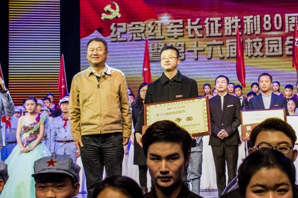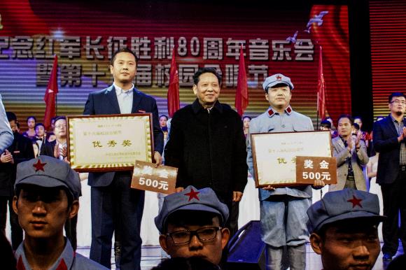 黄玉林在为音乐学院颁发特别贡献奖后发表讲话,他说,今天的活动我同样也是个受教育者,我也同样感到非常震撼,我们学校一直以来特别重视德智体美全方位发展,不仅在教育教学过程当中给同学们以知识,还要给同学们以健康的欣赏及健康的体魄,长期的文化浸润就像空气中的水分子一样,在影响着我们每一个学生的进步成长,长征精神是我们核心价值观的重要体现之一,是我们年轻人在成长发展过程当中最重要的精神食粮。我相信,这种坚贞不屈、勇往直前、不达目的、直向胜利进军的长征精神将同样根植于我们best365官方网站登录入口的办学追求当中,像我们的誓言一样,百舸争流,我们永争第一;百舸争流,我们只争第一。