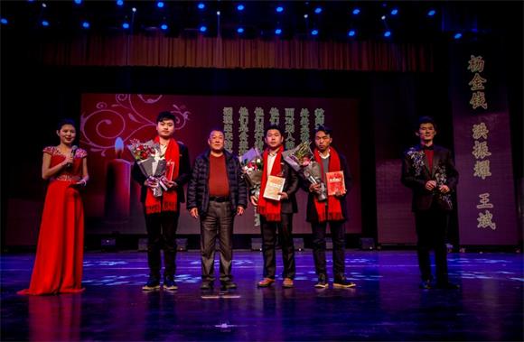 副校长李峰为杨金钱、洪振耀、王斌颁奖