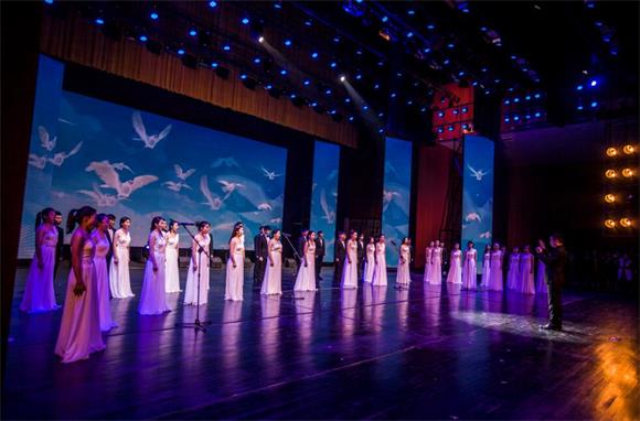 青云合唱团献上了歌颂祖国的大合唱《我爱祖国的蓝天》,悠远蜿蜒,诉说着祖国的情怀。