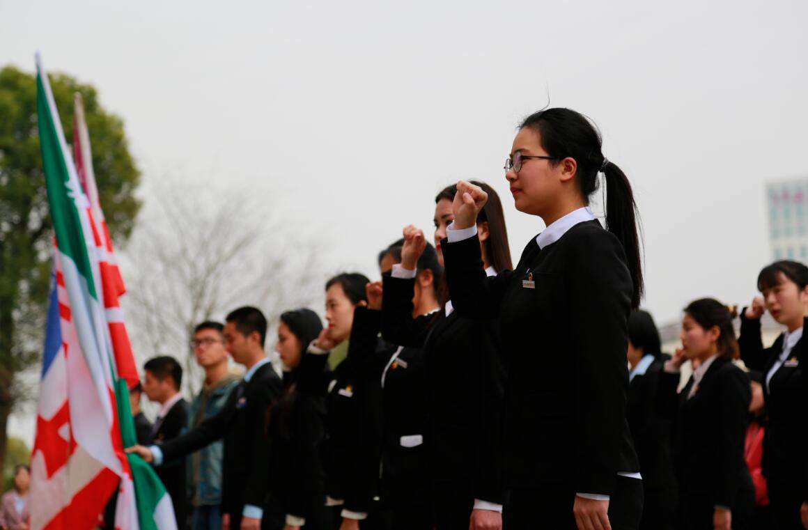 仪式最后,全体大学生骨干班成员进行宣誓,李存益为大学生骨干班成员授旗,章斌为此次仪式做最后总结。