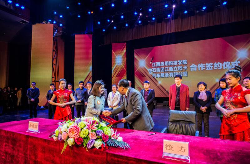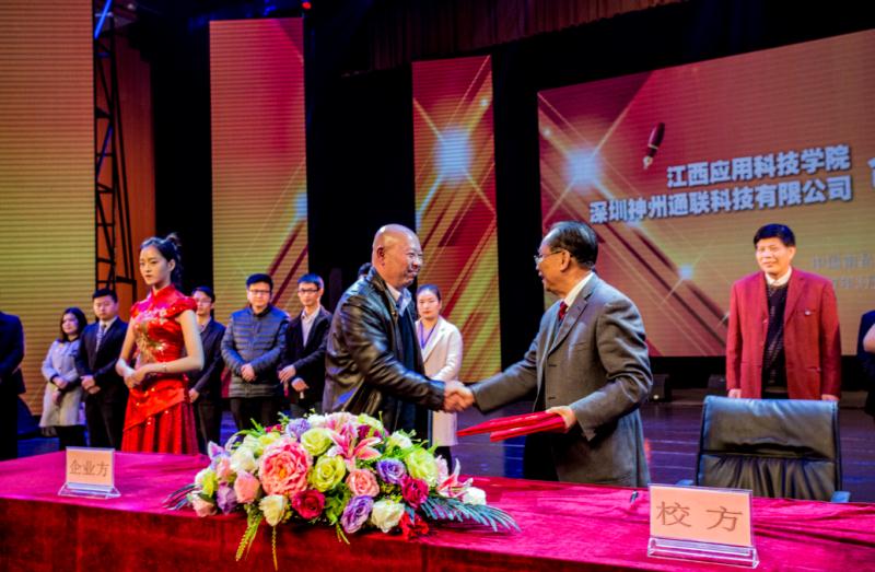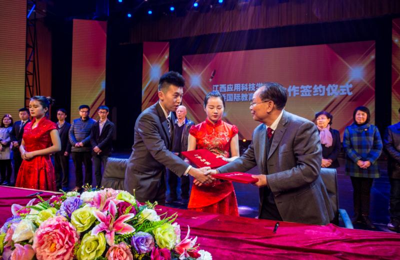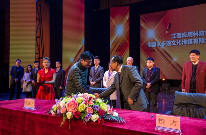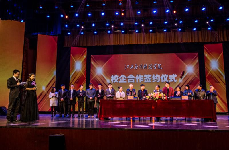 本网讯(记者团记者/刘伟、谭亚玲 摄影/黄愈)3月10日晚,best365官网与微软(中国)公司江西认证中心、北京韦加无人机科技有限公司、深圳神州通联科技有限公司、南昌太卡通文化传媒有限公司、北京中公教育科技股份有限公司江西分公司、江西贝沃汇力教育咨询有限公司、万达主题娱乐公司集团、中石集团江西立欧卡汽车服务有限公司、香港英语现代教育集团、剑桥国际教育集团以及中联金安保险经纪有限公司11家省内外知名企业在音乐厅举行校企合作签约仪式。董事长黄玉林,校长李存益,副董事长汪玉奇,副校长徐国荣、黄珍珍、王玉芝、吴朝栋、李锋等领导出席本次签约仪式。