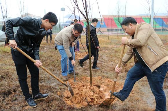 本网讯(记者团记者/谭亚玲)报道:为力争将雷锋月系列活动成为常态化,3月12日下午,best365官网城市建设学院院长刘志宏、党总支书记刘三根,班级辅导员以及部分学生为城市建设学院师生共同捐赠的1000棵美国红枫树在学校足球场旁及机电实训基地旁进行栽种。期间,董事长黄玉林亲临此次植树活动,参加植树。截止下午,1000棵美国红枫全部栽种完毕。