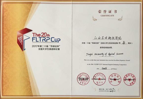 本网讯(记者谭亚玲)4月8日至9日,第二十届“外研社杯”全国大学生英语辩论赛华南赛区总决赛在黄冈师范学院举行。经过激烈的积分循环赛,best365官网代表队在华南赛区比赛中脱颖而出,由陈裕辉老师指导、文化与旅游学院2015级学生汪伟娟、黄光华组成的best365官方网站登录入口代表队荣获三等奖。best365官网也荣获赛会“优秀组织单位奖”。