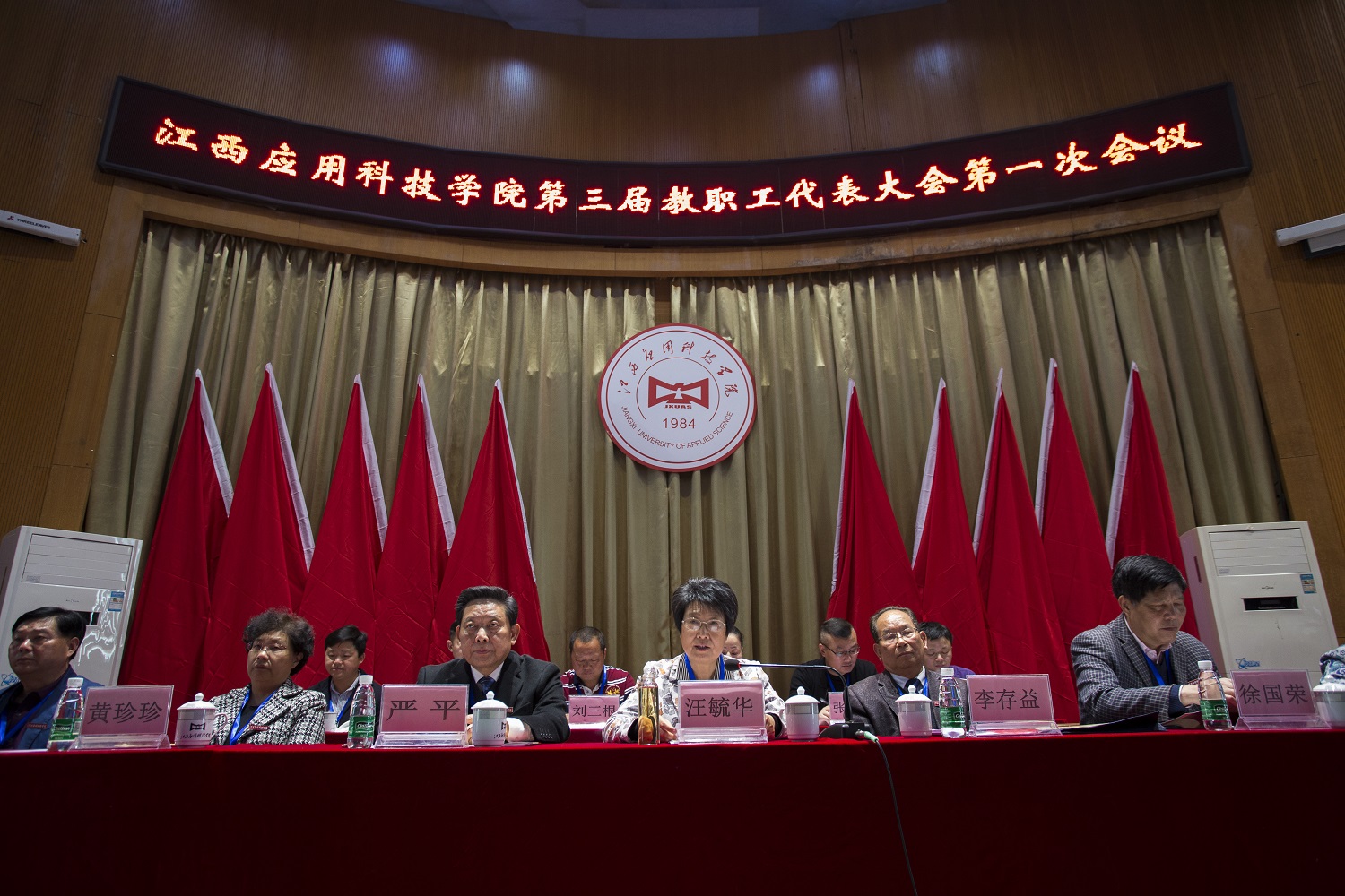 本网讯(记者/梅北云、谭亚玲、刘伟、彭福香、王梦芳、温艺琳、赵玉 摄影/黄愈、丁君朋、兰军等)4月13日下午,第三届教职工代表大会第一次会议在best365官网浴星湖大讲堂隆重召开,校党委书记汪毓华,荣誉董事长严平,校长李存益,副校长徐国荣、黄珍珍、王玉芝、吴朝栋、李锋等校领导为代表的主席团成员出席,154名教职工代表参加本次会议。会议由王玉芝主持。