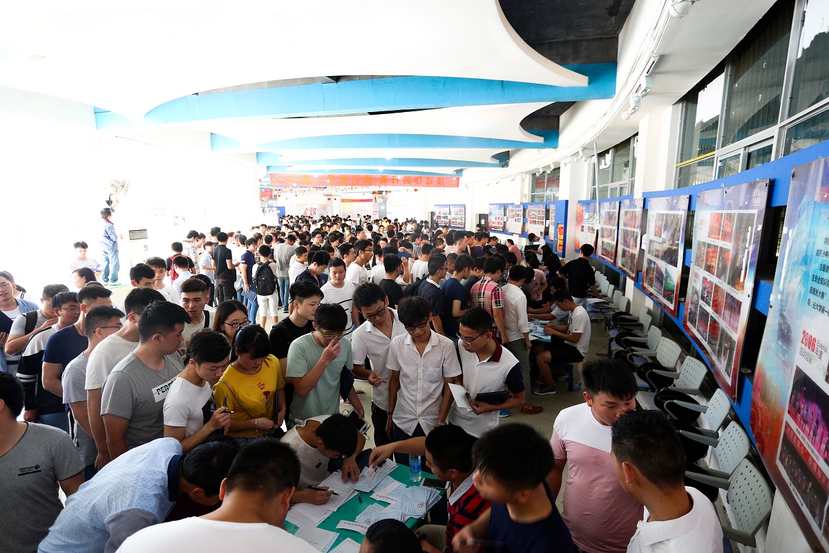 (图为现场办公处,毕业生正办理手续)