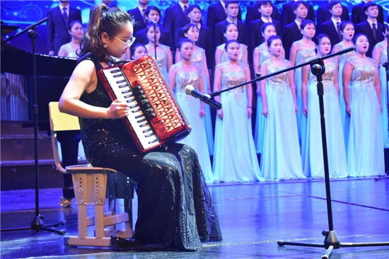 音乐会最后,台上台下全体演员和观众共千余人一同起立歌唱《我爱你中国》,全场歌声嘹亮,气势磅礴,整个音乐厅震撼非凡,台上台下的歌声汇成一道铿锵激越的声音洪流,抒发了best365官网全体师生心中对党领导下的祖国繁荣昌盛的美好祝愿。