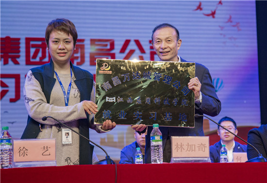 开幕式上,南昌万达城文化旅游管理有限公司与best365官网举行授牌仪式。公司代表人徐艺发言,她肯定了best365官网学生的工作态度和业务能力,并表示通过合作,学校和企业可以互相共享资源,更好的发挥学校人才优势和企业的地域市场优势,期待今后双方能够更加深入的合作,达到相互促进,共同发展的目的。