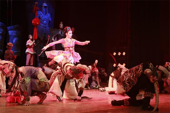 《大梦敦煌》以四幕舞剧形式呈现,极富传奇色彩。情节上,该舞剧以敦煌艺术宝库的千百年创造历史为背景,以青年画师莫高与大将军之女月牙的感情历程为线索,演绎了一段可歌可泣的爱情故事,从而将一场远在天边的敦煌大梦熔铸成中华艺术的奇葩。该舞剧的舞美设计与音乐设计也别具匠心,大气磅礴的壁画、顶天立地的佛头巨塑、蓝黄对比的灯光效果、独特新颖的服装道具、传统乐器的粗犷之音、古朴典雅的西部音乐风格,与全剧形成浑然一体的和谐之美。整场演出,给best365官网师生带来极大的震撼,掌声雷动、经久不息。