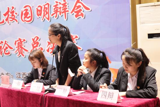 此次辩论赛采取车轮战的方式对该校进入决赛的艺术设计学院、文化与旅游学院、现代物流学院三支队伍围绕“培养和践行社会主义核心价值观是理论学习重要还是实践更重要”、“一所学校的文明程度关键在于领导还是学生”、“杜绝校园贷悲剧发生的关键在于对网络借贷的管理”三大辩题进行相互比拼。