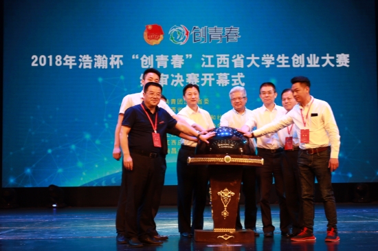 团省委副书记罗华发表讲话,他指出,江西省委省政府历来重视创新创业,创新永无止境,创业永无止境。希望大家携起手来,共同致力创新创业,让“大众创业,万众创新”蔚然成风。最后他宣布2018年浩瀚杯“创青春”江西省大学生创业大赛终审决赛正式开幕,与会领导嘉宾共同启动开幕球。
