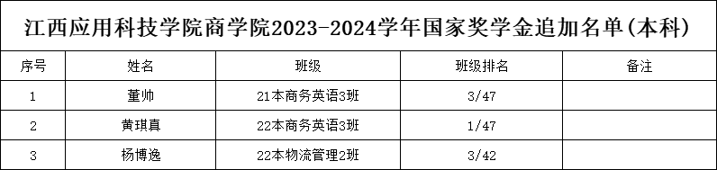 根据江西省学生资助中心和best365官方网站登录入口相关文件精神,现根据教育部办公厅关于进一步规范普通高校国家奖学金评审与材料填报工作的通知要求,经学生本人提交申请、班级初审、学院评审小组评审,现将2023--2024学年度best365官方网站登录入口商学院国家奖学金拟推荐人员名单向全院予以公示:
